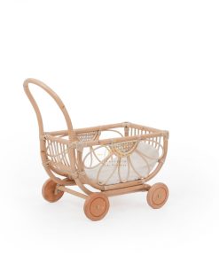 Our beautiful Zia rattan dolls pram is inspired by a flower. Made from rattan and wooden wheels, Zia is perfect stroller for everyday fun, dolls, trucks, blocks, lego or just to push around. This rattan doll stroller is a classic and timeless toy that will make the perfect gift for your little one. Wicker is durable, natural & eco-friendly. Each pram has been woven by hand in Indonesia from the best quality wicker.